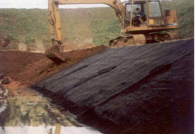 3、土工席墊與HDPE結合應用時,同時能起到很好地保護HDPE膜不被穿刺的作用。